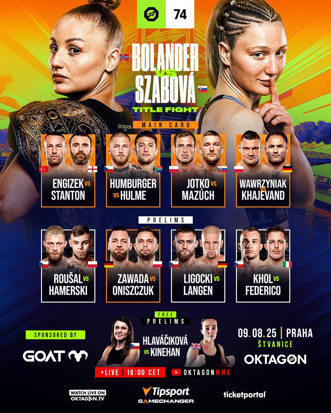 Oktagon 74 is live from Prague on Saturday night from 17:00 Irish time on Oktagon.tv.