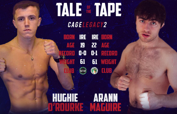 The main event sees Team Ryano’s Hughie O’Rourke making his pro debut as he takes on BJJ Cork’s Arann Maguire in a 140lb catchweight bout.