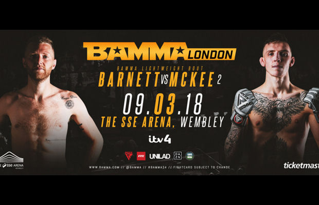 BAMMA announced this afternoon that the scheduled rematch between Tim Barnett and Rhys McKee has been promoted to the main card and will now be for the vacant BAMMA Lightweight Title at BAMMA 34